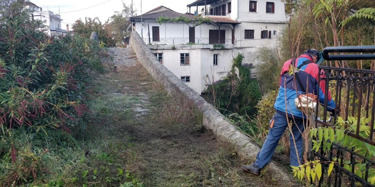 Δόθηκε ιδιαίτερη βαρύτητα στον καλλωπισμό του περιβάλλοντος χώρου στην περιοχή της παλιάς γέφυρας, επειδή τα δέντρα και η βλάστηση έκρυβαν το ιστορικό λιθόκτιστο γεφύρι, εμποδιζόταν η πρόσβαση στην κοίτη του ποταμιού και υπήρχε κίνδυνος πτώσης δέντρων σε  περίπτωση δυνατών ανέμων.