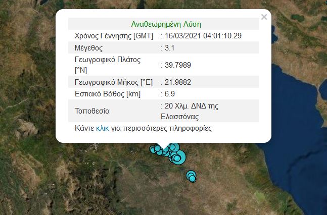 Μία ακόμη νύχτα ανησυχίας πέρασαν οι σεισμόπληκτοι κάτοικοι στην ευρύτερη περιοχή της Ελασσόνας και του Τυρνάβου από τη συνέχιση της σεισμικής ακολουθίας που καταγράφουν οι σεισμογράφοι του Γεωδυναμικού Ινστιτούτου του Εθνικού Αστεροσκοπείου Αθηνών.