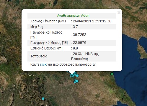 Σεισμός 3,7 Ρίχτερ κούνησε την Ελασσόνα