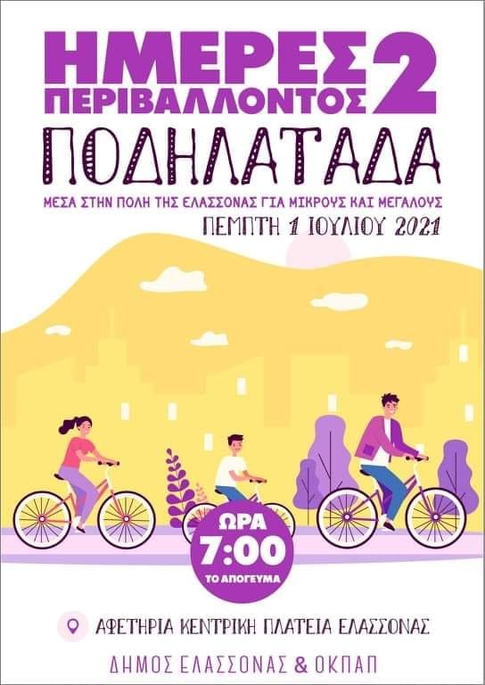 «Ποδηλατάδα» με τη συμμετοχή μικρών και μεγάλων διοργανώνει σήμερα Πέμπτη 1 Ιουλίου ο Δήμος Ελασσόνας στο πλαίσιο των εκδηλώσεων «Ημέρες Περιβάλλοντος 2».