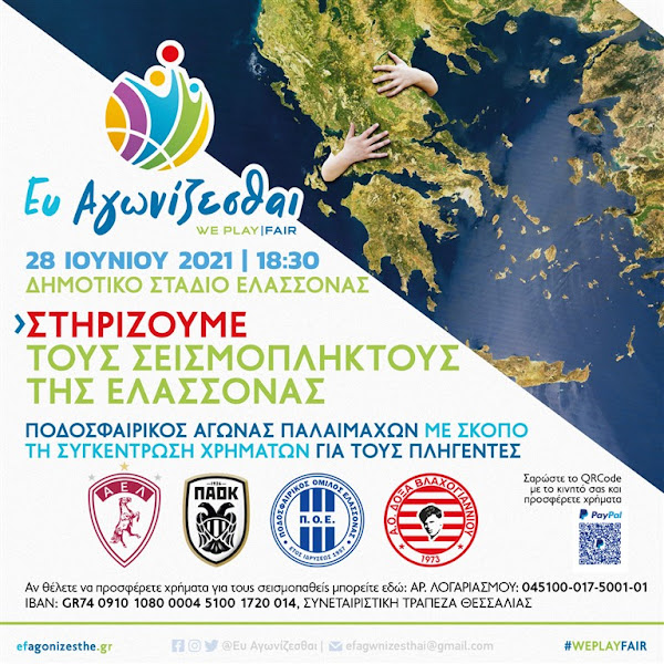 Ποδοσφαιρικός αγώνας Παλαιμάχων για τη στήριξη των σεισμόπληκτων της Ελασσόνας