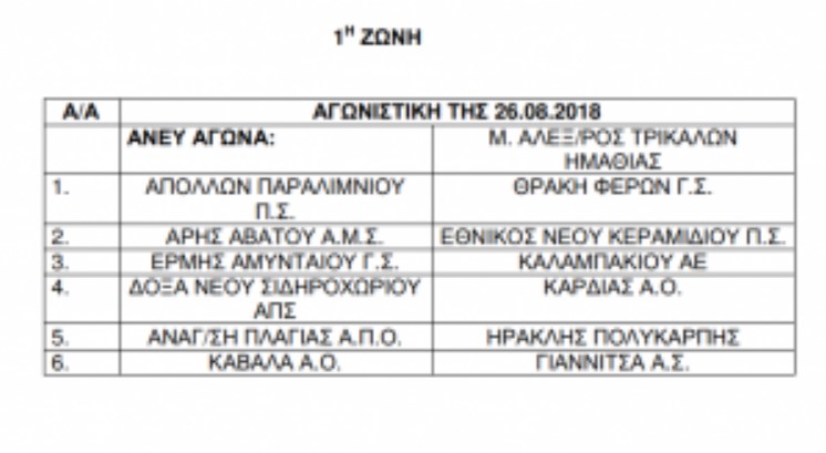 Η κλήρωση έγινε ξεχωριστά για την κάθε μία από τις τέσσερις ζώνες στις οποίες έχουν χωριστεί τα σωματεία με γεωγραφικά κριτήρια.